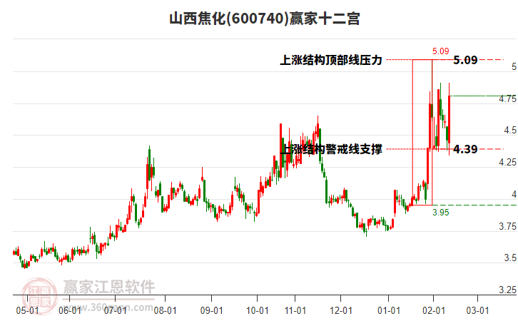 該股自近期高點(diǎn)5.09跌至今日4.5,共下跌0.59元,跌幅13.11%,當(dāng)前股價(jià)處于2026年1月30日形成的上漲結(jié)構(gòu)頂部線與警戒線之間。依據(jù)贏家十二宮多空能量守恒規(guī)則,若多方能量再度聚集發(fā)力上攻,上方平衡位置關(guān)注結(jié)構(gòu)頂部線5.09尋找平衡位;若跌破警戒線,空方繼續(xù)主導(dǎo),則將進(jìn)一步下探往結(jié)構(gòu)底部線3.95尋找平衡位。