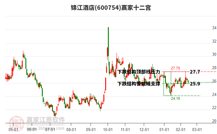 錦江酒店根據(jù)贏家江恩極反通道趨勢工具展示,上方壓力位29.4439,下方支撐位25.7869。錦江酒店處于贏家江恩多頭主線形態(tài),從2月3日形成底分型后持續(xù)上攻,今日突破前高形成初次江恩筑底信號,中長期