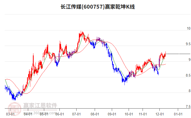 依據(jù)贏家江恩系統(tǒng)趨勢工具極反通道分析判斷長江傳媒600757運(yùn)行在生命線以上強(qiáng)勢區(qū)域,根據(jù)規(guī)則該股可短線、波段結(jié)合操作;結(jié)合物極必反的原理通過分鐘圖做盤中差價(jià),應(yīng)用口訣是:生命線上強(qiáng)勢走,生命線下難抬頭;紅黃兩條外軌線,壓力支撐顯勢頭。