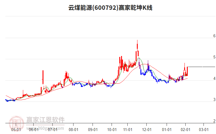 600792云煤能源以4.64元漲停,突破江恩價格循環(huán)線工具關(guān)鍵點位4.0元