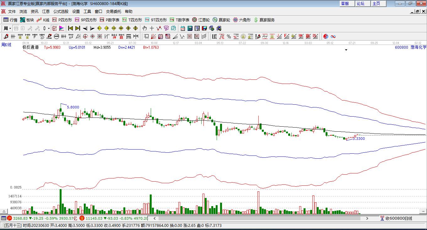 渤海化學(xué)今日漲停,受極反通道強(qiáng)勢(shì)通道線壓制