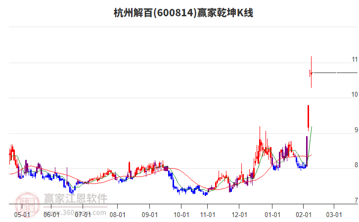 杭州解百今日漲停,報(bào)收于:10.78元/股 漲幅10.0%