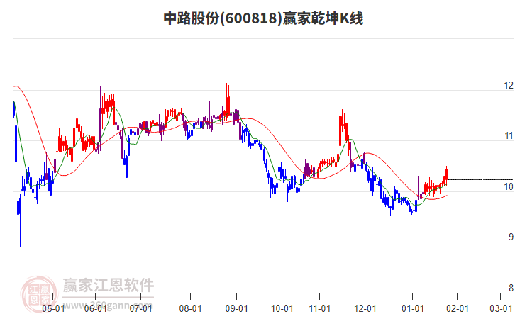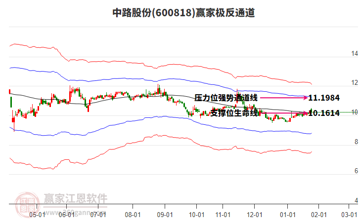 當(dāng)天中路股份最高價(jià)11.81挑戰(zhàn)了贏家極反通道工具藍(lán)色外軌線,受到藍(lán)色外軌線強(qiáng)力壓制,最終收盤停留在在藍(lán)色外軌線與生命線上方的強(qiáng)勢(shì)通道區(qū)域。中路股份近10個(gè)交易日漲幅10.16%。