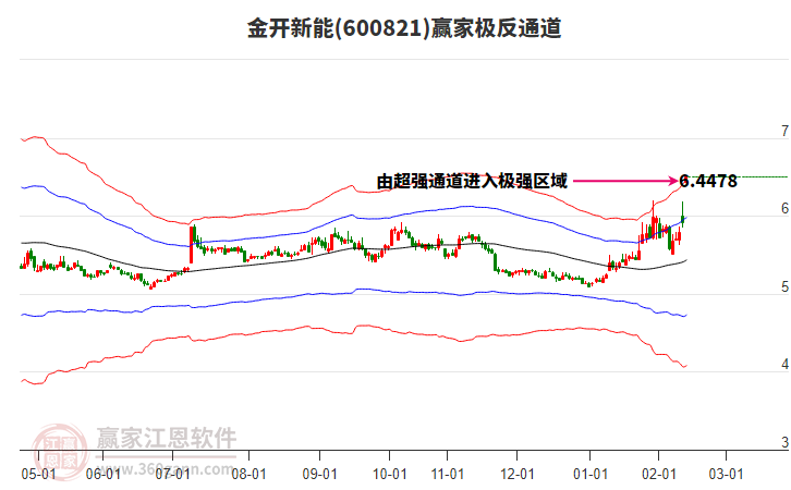 目前金開新能最高價6.2上穿了贏家極反通道工具上方紅色外軌線,受到上方紅色外軌線強力壓制,最終收盤停留在在上方紅色外軌線與藍色外軌線上方的超強通道區(qū)域。金開新能近10個交易日漲幅10.93%。
