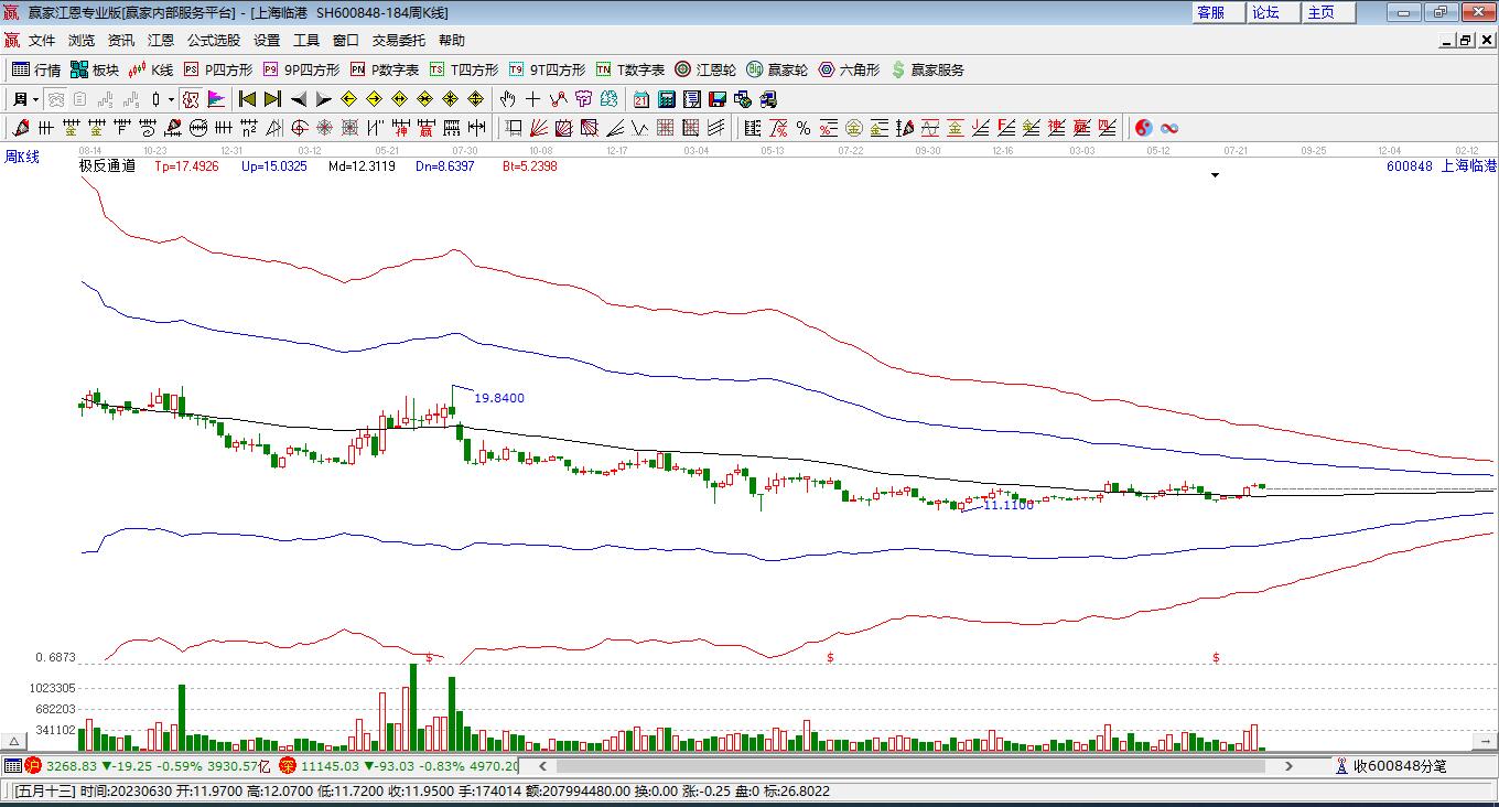 在12月第2周(12月8日-12月12日)中上海臨港(600848)周漲幅為微漲0.53%。本周最高價(jià)為11.77元,出現(xiàn)在星期一,最低價(jià)為11.23元,出現(xiàn)在星期三。