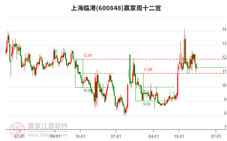 依據(jù)贏家江恩乾坤K線工具展示,目前股價(jià)處于紫色區(qū)域,本周K線以陽(yáng)線收盤,出局線回調(diào)接近關(guān)注線,關(guān)注線對(duì)出局線形成支撐,密切關(guān)注此位置得失。近期低點(diǎn)為11.06,此位置不破,趨勢(shì)依舊看多。跌破此位置,將打開下行空間。
