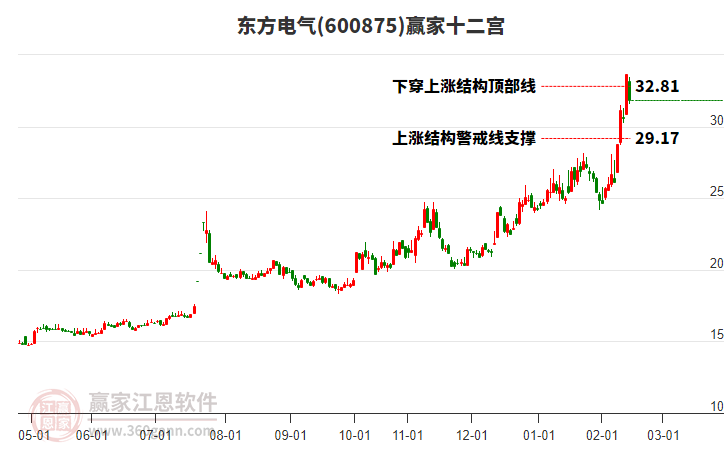東方電氣600875漲至老子十二宮上漲結(jié)構(gòu)頂部上方區(qū)域內(nèi) 近9個(gè)交易日漲幅35.41%