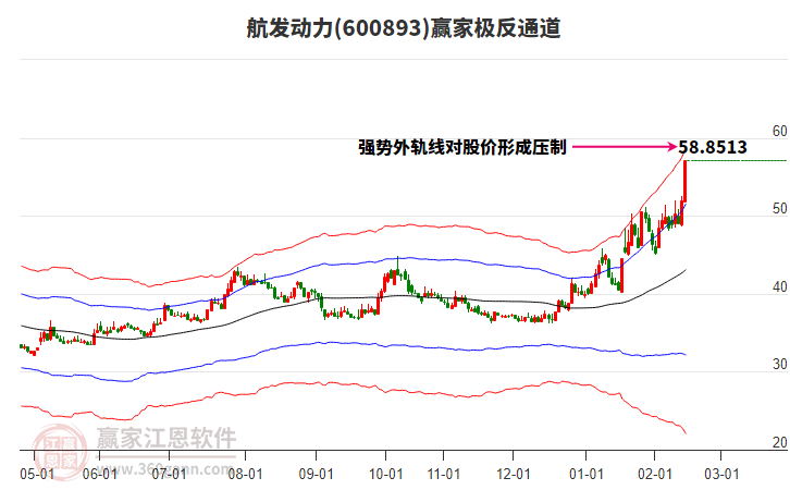 目前600893航發(fā)動力最高價50.29上穿了贏家極反通道工具上方紅色外軌線,受到上方紅色外軌線強力壓制,最終收盤停留在在上方紅色外軌線與藍色外軌線上方的超強通道區(qū)域。600893航發(fā)動力近10個交易
