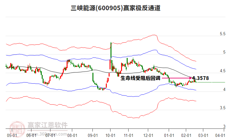 依據(jù)贏家江恩系統(tǒng)趨勢(shì)工具極反通道分析判斷三峽能源600905運(yùn)行在生命線以下弱勢(shì)區(qū)域,根據(jù)規(guī)則該股短線輕倉(cāng)參與,股價(jià)跌至弱勢(shì)外軌線后波段再結(jié)合其它工具信號(hào)建倉(cāng)。應(yīng)用口訣是:生命線上強(qiáng)勢(shì)走,生命線下難抬頭;紅黃兩條外軌線,壓力支撐顯勢(shì)頭。