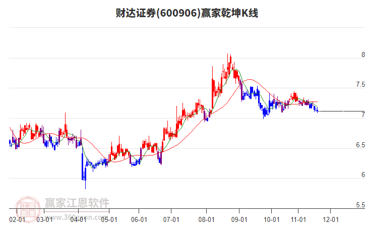 財達證券(600906)處于贏家江恩空頭主線形態(tài),11月7日發(fā)出江恩筑底信號后,經(jīng)過53日,今日形成短期筑頂信號,短期多頭趨勢已被破壞,中長線均在空頭下跌趨勢中。財達證券截至目前K線為小十字星,經(jīng)過一