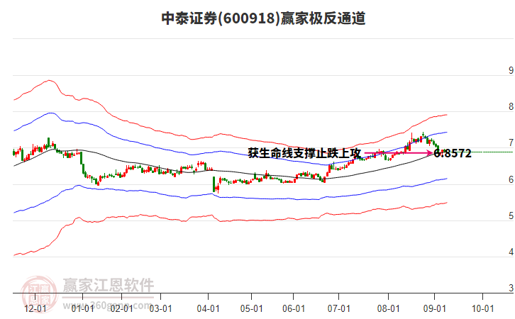 依據(jù)贏家江恩系統(tǒng)趨勢(shì)工具極反通道分析判斷中泰證券600918運(yùn)行在生命線以下弱勢(shì)區(qū)域,根據(jù)規(guī)則該股短線輕倉參與,股價(jià)跌至弱勢(shì)外軌線后波段再結(jié)合其它工具信號(hào)建倉。應(yīng)用口訣是:生命線上強(qiáng)勢(shì)走,生命線下難抬頭;紅黃兩條外軌線,壓力支撐顯勢(shì)頭。