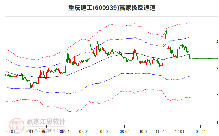 600939重慶建工根據(jù)贏家江恩極反通道趨勢(shì)工具展示,上方壓力位3.3529,下方支撐位2.8633。600939重慶建工處于贏家江恩空頭主線形態(tài),1月20日發(fā)出江恩筑底信號(hào)后,經(jīng)過(guò)23日,今日形成短