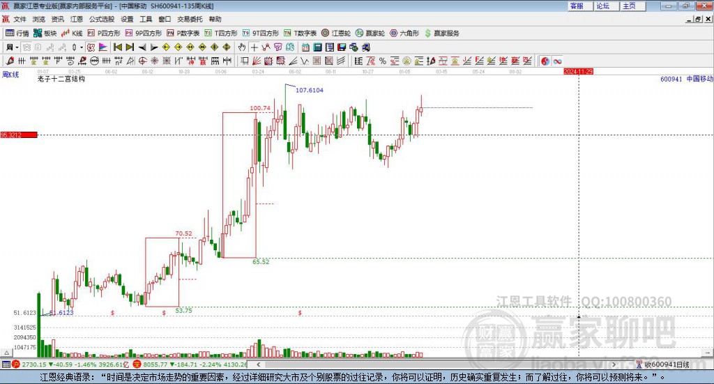 中國(guó)移動(dòng)————贏家江恩五星評(píng)級(jí)展示(周K)