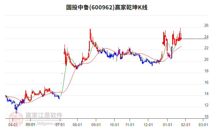 600962國(guó)投中魯根據(jù)贏家江恩極反通道趨勢(shì)工具展示,上方壓力位26.0593,下方支撐位22.0522。600962國(guó)投中魯處于贏家江恩多頭次主線(xiàn)形態(tài),1月15日發(fā)出江恩筑底信號(hào)后,經(jīng)過(guò)26日,今日