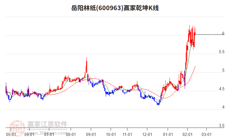 今天岳陽林紙600963以上影小陽線收盤,近期時間窗口為:2月9日