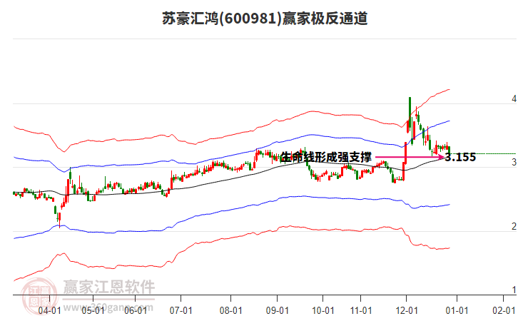 目前600981蘇豪匯鴻最高價3.95挑戰(zhàn)了贏家極反通道工具上方紅色外軌線,受到上方紅色外軌線強力壓制,最終收盤停留在在上方紅色外軌線與藍色外軌線上方的超強通道區(qū)域。600981蘇豪匯鴻近10個交易日