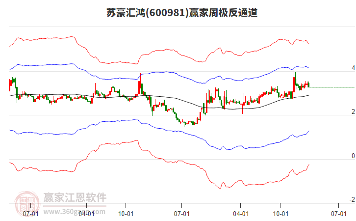 目前600981蘇豪匯鴻最高價3.95挑戰(zhàn)了贏家極反通道工具上方紅色外軌線,受到上方紅色外軌線強力壓制,最終收盤停留在在上方紅色外軌線與藍色外軌線上方的超強通道區(qū)域。600981蘇豪匯鴻近10個交易日