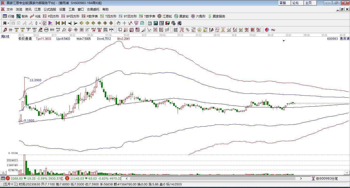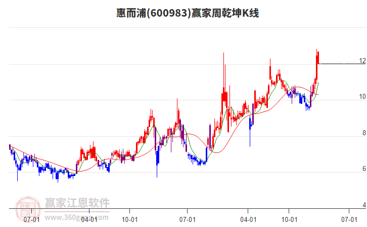600983惠而浦低開收大陽線,當(dāng)天收盤價為12.0