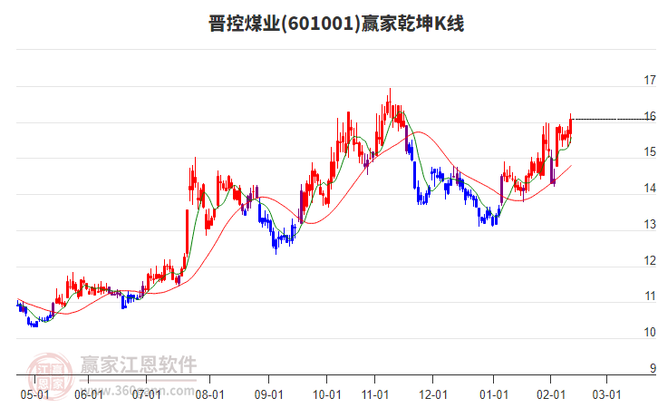 今天晉控煤業(yè)最高價16.95挑戰(zhàn)了贏家極反通道工具藍色外軌線,受到藍色外軌線強力壓制,最終收盤停留在在藍色外軌線與生命線上方的強勢通道區(qū)域。晉控煤業(yè)近10個交易日漲幅6.75%。