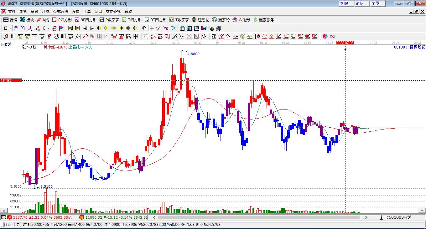 601003柳鋼股份處于贏家江恩多頭中期回調(diào)形態(tài),從1月30日形成頂分型后持續(xù)下跌,重心下移,今日跌破前低形成短期初次筑頂信號(hào),短期多頭趨勢已被破壞,中期多頭反彈趨勢延續(xù),但長期處于回調(diào)中。60100