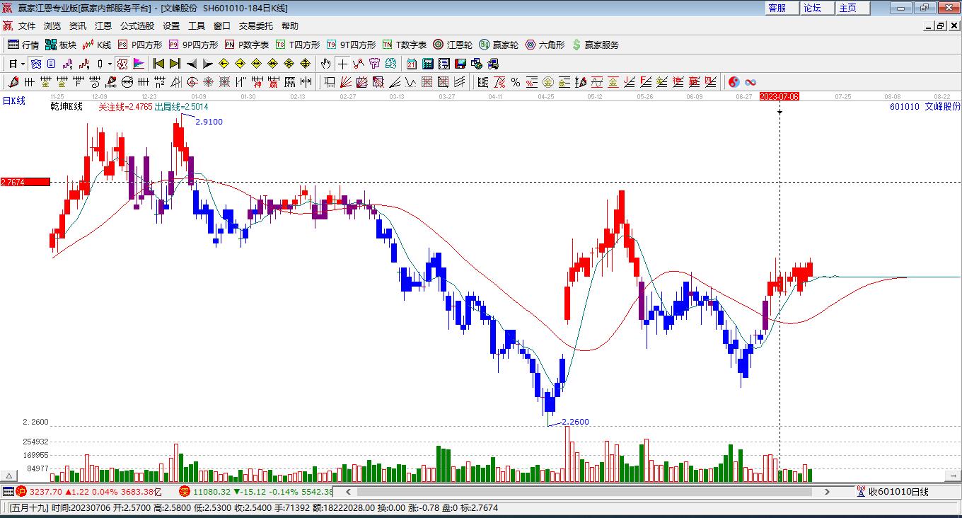 依據(jù)贏家江恩乾坤K線工具展示,目前股價處于藍色區(qū)域,本周K線以陰線收盤,周K線收于出局線下方。近期波段低點為2月6日2.61點,若跌破前期低點2.61,將形成短期下行趨勢,如短期股價快速進入紅色區(qū)域,有望波段走強。