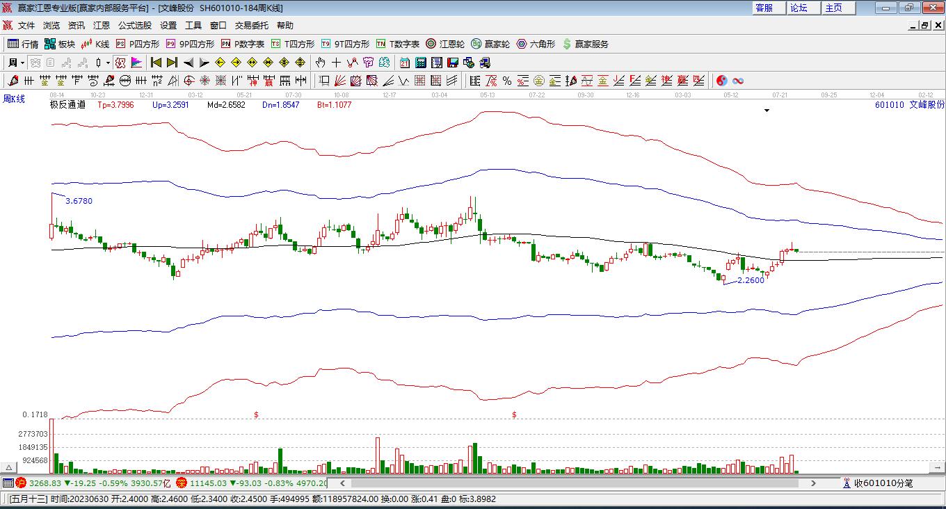 依據(jù)贏家江恩極反通道趨勢工具展示,本周股價處于生命線下弱勢通道,該股自2026年1月30日跌破生命線后,持續(xù)運行在弱勢通道區(qū)域,本周股價2.61,生命線2.7828,上方距生命線僅余0.17點,生命線對本周股價形成壓制,依據(jù)贏家江恩極反通道規(guī)則,一線受阻,回調(diào)一線,若后市突破并站穩(wěn)生命線,則有望展開一波反彈,如未能突破生命線,后市將會持續(xù)下探弱勢通道線附近尋找支撐。