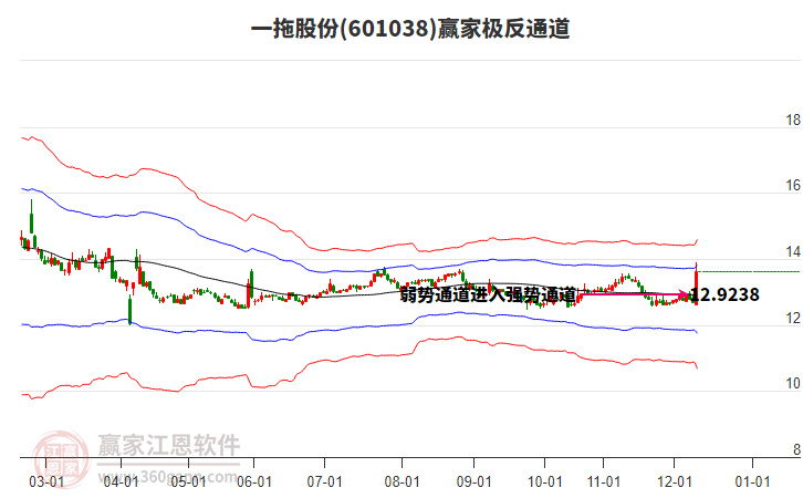12月10日一拖股份上穿藍(lán)色外軌線 以光腳大陽線收盤