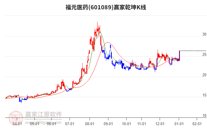 福元醫(yī)藥(601089)處于贏家江恩多頭次主線形態(tài),1月5日發(fā)出江恩筑底信號(hào)后,經(jīng)過(guò)28日,今日形成短期筑頂信號(hào),短期多頭趨勢(shì)已被破壞,中長(zhǎng)期多頭趨勢(shì)依舊保持。福元醫(yī)藥今日低開(kāi)下跌,截止目前K線為上下