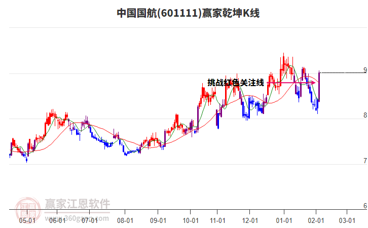 中國國航(601111)低開收穿頭破腳大陽線,目前處于多頭趨勢