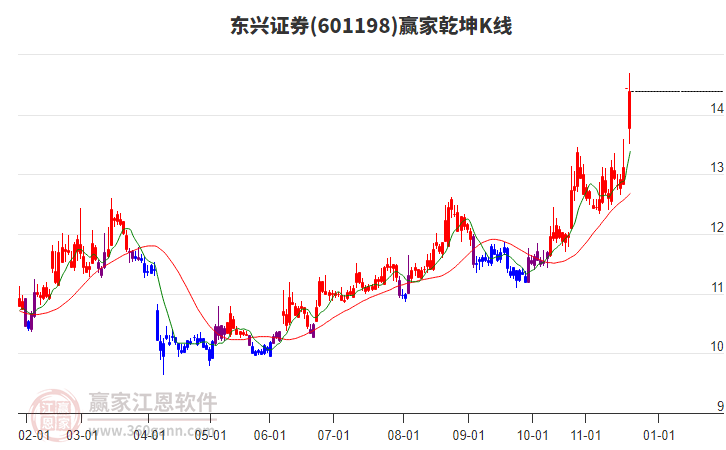 601198東興證券最高價(jià)挑戰(zhàn)藍(lán)色外軌線 微漲1.63%
