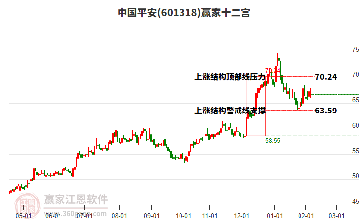 該股自近期高點69.1跌至今日65.29,共下跌3.81元,跌幅5.84%,當前股價處于2025年12月23日形成的上漲結構頂部線與警戒線之間。依據(jù)贏家十二宮多空能量守恒規(guī)則,若多方能量再度聚集發(fā)力上攻,上方平衡位置關注結構頂部線70.24尋找平衡位;若跌破警戒線,空方繼續(xù)主導,則將進一步下探往結構底部線58.55尋找平衡位。