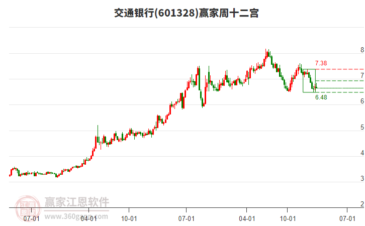 交通銀行根據(jù)贏家江恩極反通道趨勢工具展示,上方壓力位7.262,下方支撐位6.5879。交通銀行處于贏家江恩多頭主線形態(tài),今日重心下移,形成了頂分型,9月19日發(fā)出中期江恩筑頂信號后,經(jīng)過108日,今
