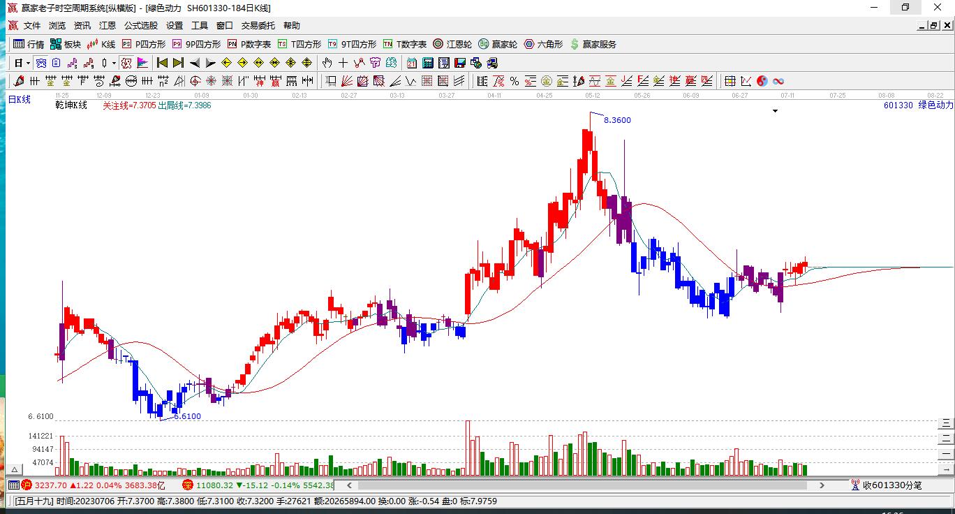 本周601330綠色動力報收于7.7元,較上周的7.38微漲4.34%,綜合兩個工具的分析結(jié)果,目前處于近期高位,未來下跌風險隨著時間推移有增大可能性。