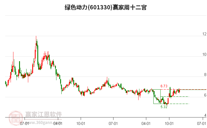 綠色動力處于贏家江恩多頭主線形態(tài),從12月30日形成底分型后持續(xù)上攻,今日突破前高形成初次江恩筑底信號,中期多頭趨勢延續(xù),但長期處于回調(diào)中。綠色動力根據(jù)贏家江恩極反通道趨勢工具展示,上方壓力位7.04