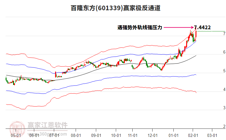 今日百隆東方最高價(jià)7.51上穿了贏家極反通道工具上方紅色外軌線,受到上方紅色外軌線強(qiáng)力壓制,最終收盤停留在在上方紅色外軌線與藍(lán)色外軌線上方的超強(qiáng)通道區(qū)域。百隆東方近10個(gè)交易日漲幅7.74%。