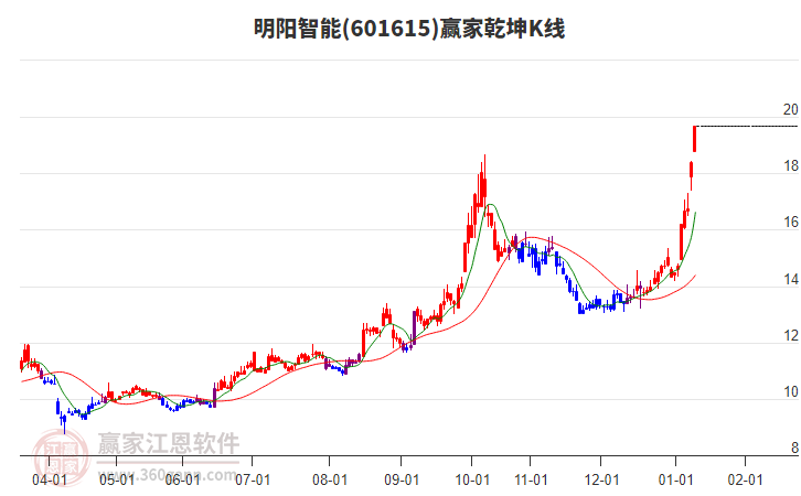 601615明陽智能今日一字板漲停,連續(xù)上漲9個交易日,漲幅達52.86%