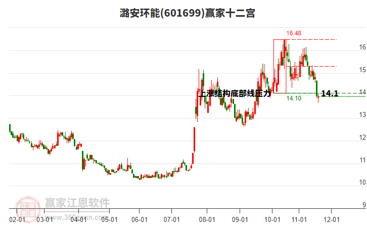 潞安環(huán)能在高點16.14后,回調(diào)了2.17元,等距時間線工具顯示近期時間窗11月20日
