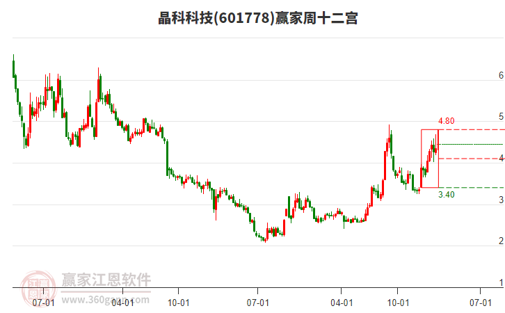 周四601778晶科科技最高價4.58上穿了贏家極反通道工具藍色外軌線,受到藍色外軌線強力壓制,最終收盤停留在在藍色外軌線與生命線上方的強勢通道區(qū)域。601778晶科科技近10個交易日漲幅4.52%。