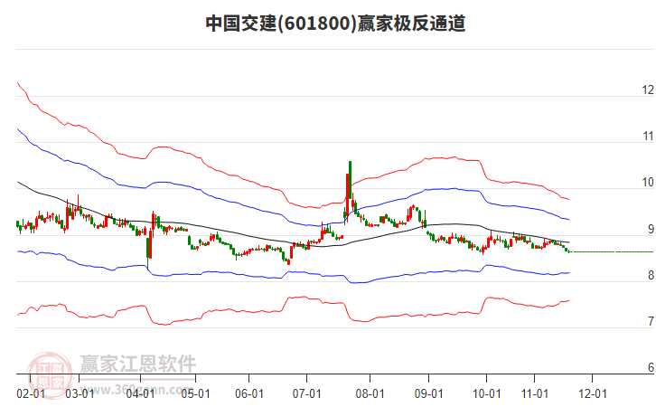依據(jù)贏家江恩系統(tǒng)趨勢工具極反通道分析判斷中國交建601800運行在生命線以下弱勢區(qū)域,根據(jù)規(guī)則該股短線輕倉參與,股價跌至弱勢外軌線后波段再結(jié)合其它工具信號建倉。應(yīng)用口訣是:生命線上強勢走,生命線下難抬頭;紅黃兩條外軌線,壓力支撐顯勢頭。