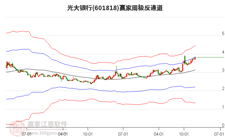 光大銀行處于贏家江恩多頭主線形態(tài),9月25日發(fā)出中期江恩筑頂信號(hào)后,經(jīng)過95日,今日中期形成江恩筑底信號(hào),屬中期多頭預(yù)警,長(zhǎng)期處于多頭回調(diào)趨勢(shì)。光大銀行根據(jù)贏家江恩極反通道趨勢(shì)工具展示,上方壓力位3.