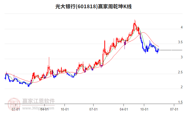 在1月第4周(1月19日-1月23日)中光大銀行(601818)周漲幅為微漲0.6%。本周最高價(jià)為3.41元,出現(xiàn)在星期三,最低價(jià)為3.33元,出現(xiàn)在1月19日。