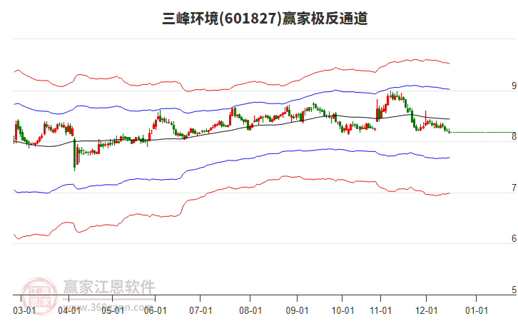 依據(jù)贏家江恩系統(tǒng)趨勢工具極反通道分析判斷三峰環(huán)境601827運(yùn)行在生命線以下弱勢區(qū)域,根據(jù)規(guī)則該股短線輕倉參與,股價(jià)跌至弱勢外軌線后波段再結(jié)合其它工具信號建倉。應(yīng)用口訣是:生命線上強(qiáng)勢走,生命線下難抬頭;紅黃兩條外軌線,壓力支撐顯勢頭。