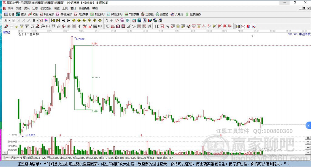 601866中遠海發(fā)處于贏家江恩多頭次主線形態(tài),從11月17日形成頂分型后持續(xù)下跌,重心下移,今日跌破前低形成短期初次筑頂信號,短期多頭趨勢已被破壞,中長期多頭趨勢依舊保持。601866中遠海發(fā)根據(jù)贏