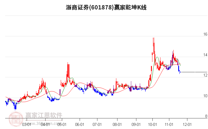 601878浙商證券低開收上影陽十字星,今日收盤價(jià)11.33