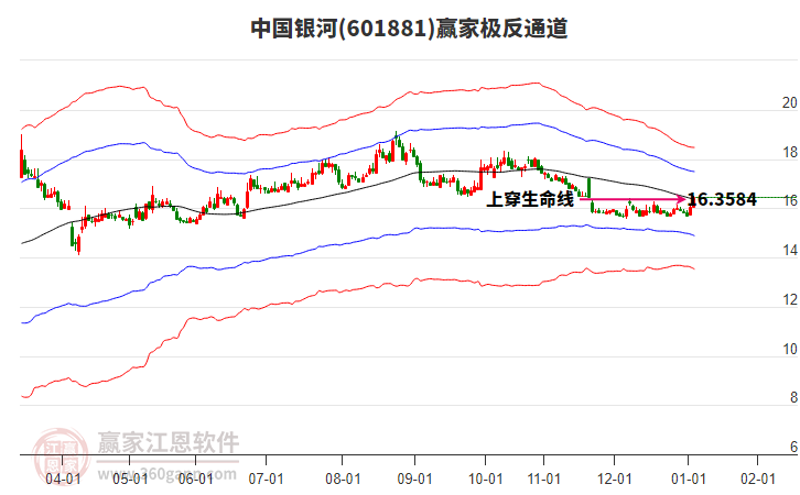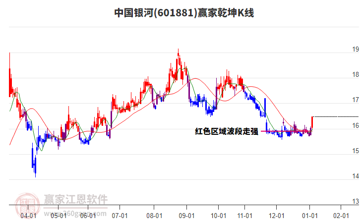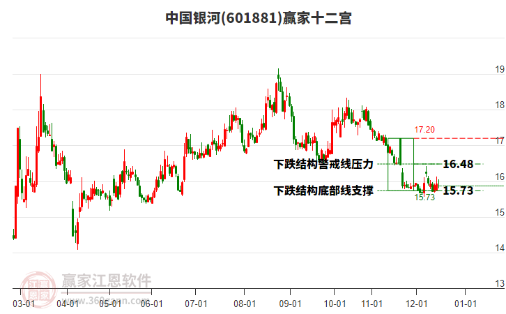 依據(jù)贏家江恩系統(tǒng)趨勢工具極反通道分析判斷中國銀河601881運(yùn)行在生命線以下弱勢區(qū)域,根據(jù)規(guī)則該股短線輕倉參與,股價(jià)跌至弱勢外軌線后波段再結(jié)合其它工具信號建倉。應(yīng)用口訣是:生命線上強(qiáng)勢走,生命線下難抬頭;紅黃兩條外軌線,壓力支撐顯勢頭。