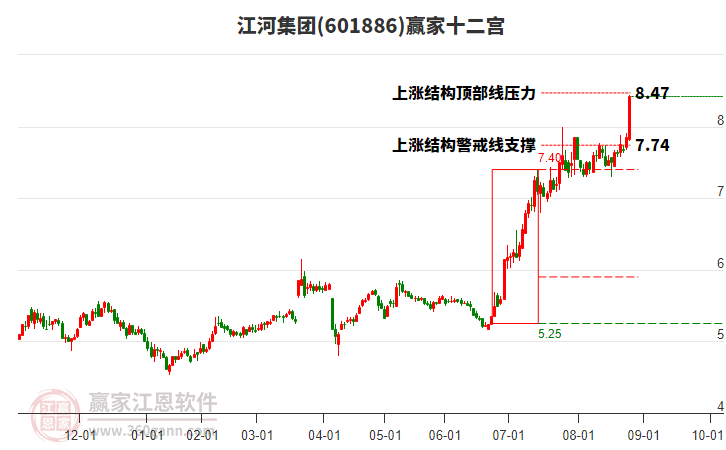 江河集團(tuán)601886今日漲停,漲停突破藍(lán)色上軌線