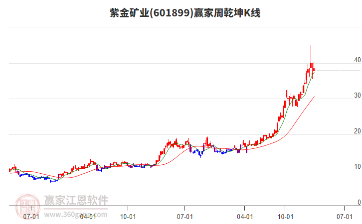 目前紫金礦業(yè)601899最高價(jià)42.58挑戰(zhàn)了贏家極反通道工具上方紅色外軌線,受到上方紅色外軌線強(qiáng)力壓制,最終收盤停留在在上方紅色外軌線與藍(lán)色外軌線上方的超強(qiáng)通道區(qū)域。紫金礦業(yè)601899近10個交易