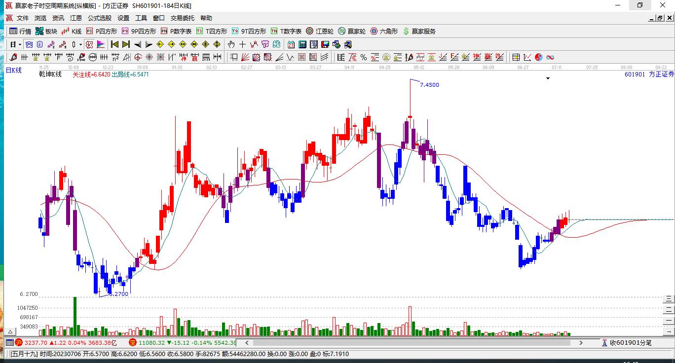 依據(jù)贏家江恩乾坤K線工具展示,目前股價(jià)處于藍(lán)色區(qū)域,本周K線以陰線收盤,周K線收于出局線下方。近期前方高點(diǎn)1月16日8.44點(diǎn),如短期有效突破前期高點(diǎn)8.44,有望走出震蕩區(qū)域,如不能突破,繼續(xù)延續(xù)箱體震蕩。