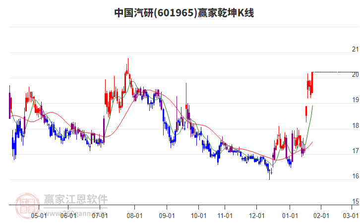 中國(guó)汽研601965最高價(jià)挑戰(zhàn)上方紅色外軌線 漲幅5.29%