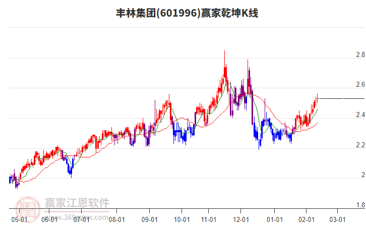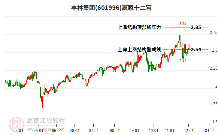 豐林集團(tuán)處于贏家江恩多頭中期回調(diào)形態(tài),從1月19日形成底分型后持續(xù)上攻,今日突破前高形成初次江恩筑底信號(hào),中長(zhǎng)期多頭趨勢(shì)依舊保持。豐林集團(tuán)根據(jù)贏家江恩極反通道趨勢(shì)工具展示,上方壓力位2.423,下方支